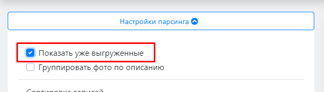 Для того чтобы показать все записи, расскройте меню "Настройка парсинга" и поставьте галку "Показать уже выгруженные":
