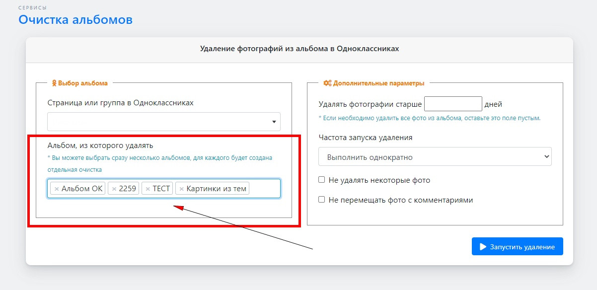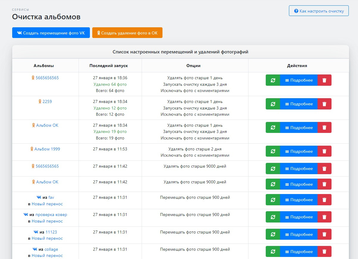 - Очистка альбомов