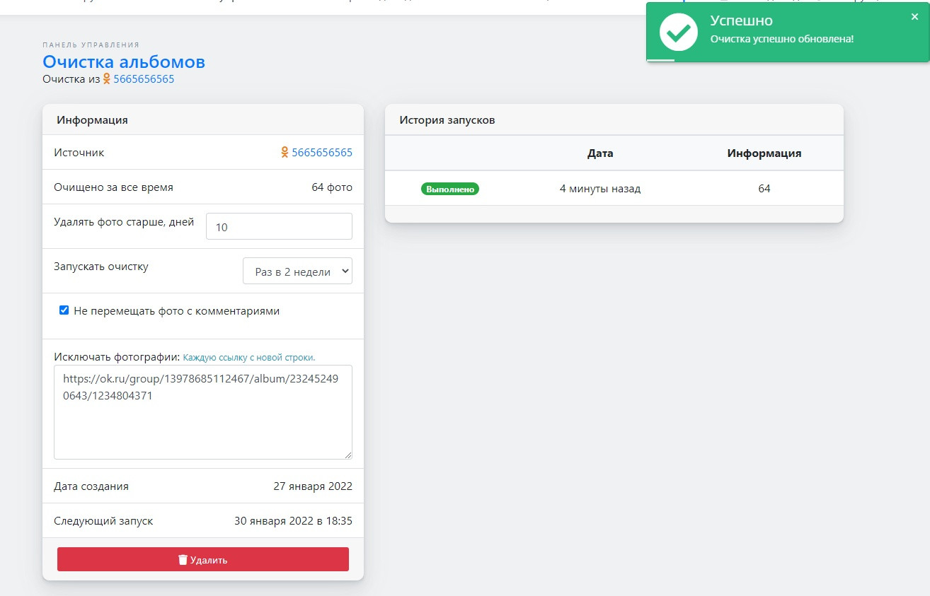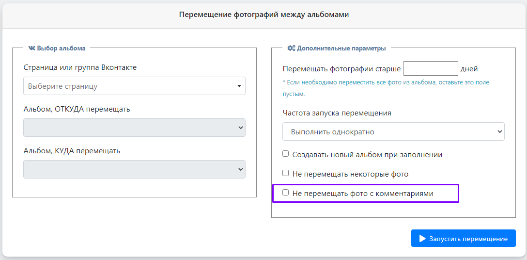 2. Исключение фото с комментариями в очистке альбомов Вконтакте.