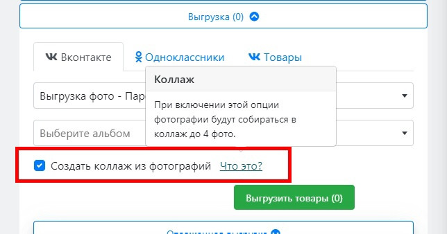 + Просто установите галку "Создать коллаж из фотографий" (фото ниже), и фотографии одного товара со стены поставщика будут сгруппированы в коллаж до 4 фото.