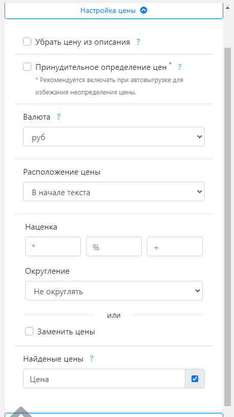 или Заменить цены - выбрав эту опцию Вы можете настроить замену значений оригинальных цен на нужную Вам:
