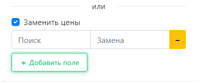 + - Введите в это поле число, которое необходимо прибавить к цене. Например, первоначальная цена товара 100, Вы ввели в это поле значение 50 - новая цена будет 100 + 50 = 150