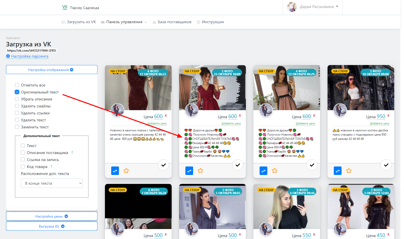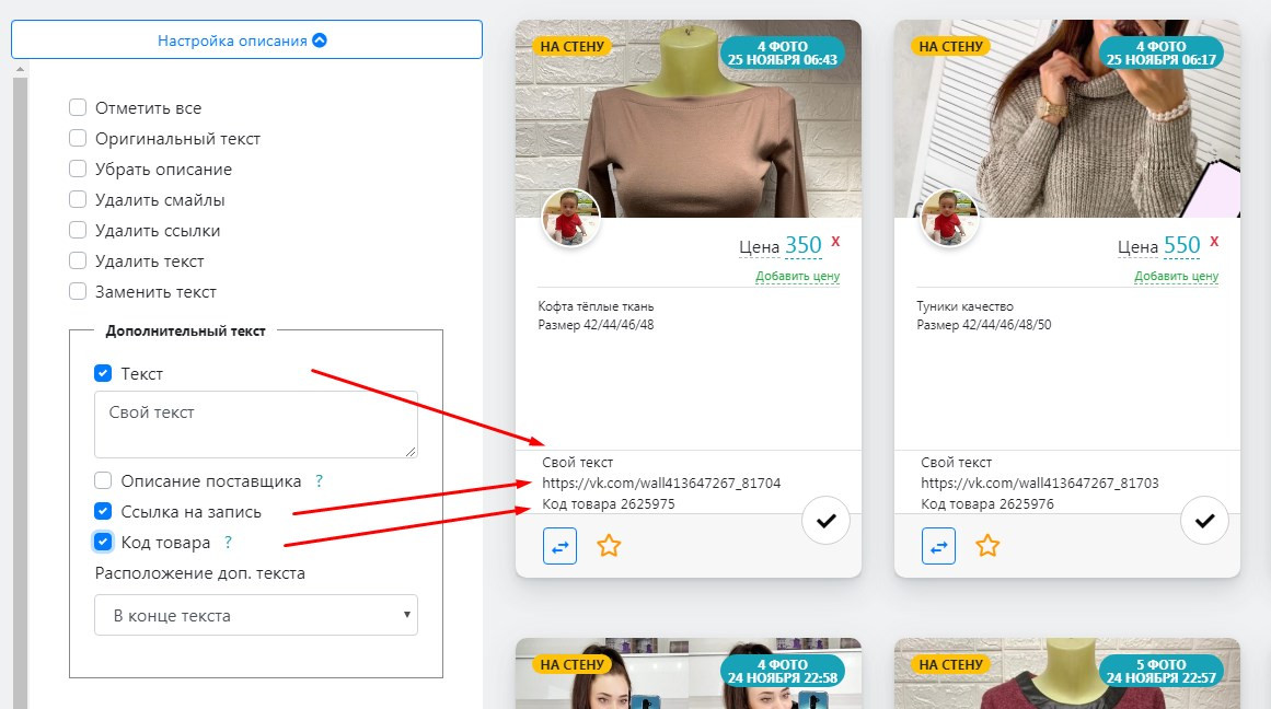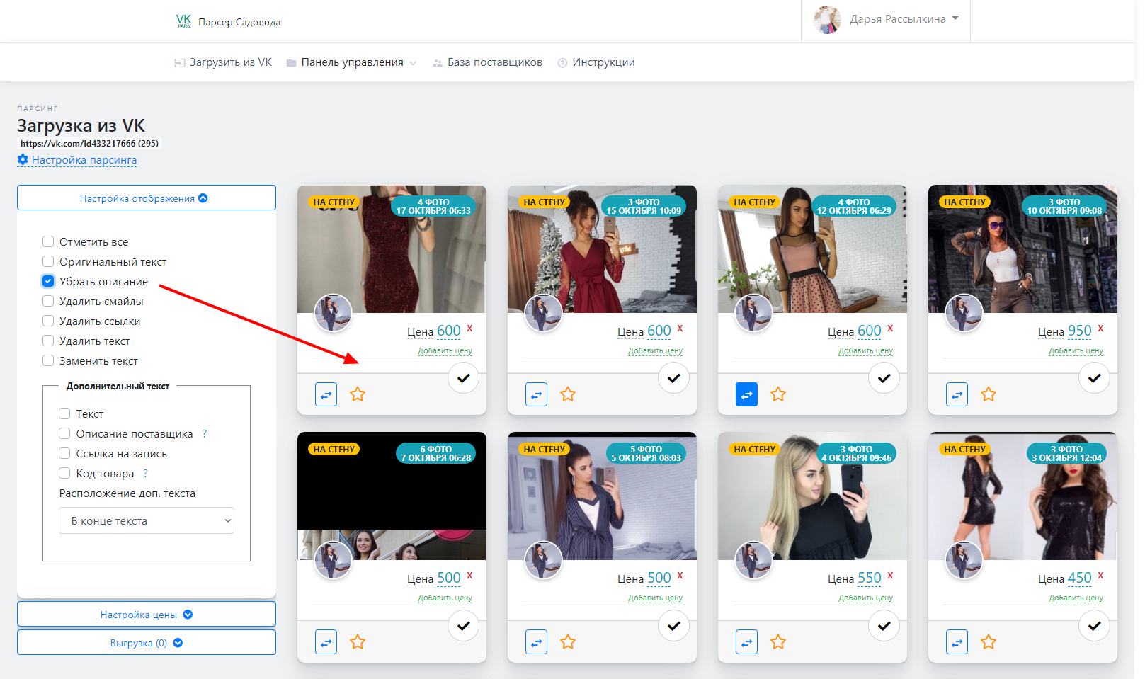 Выгрузка товаров в VK