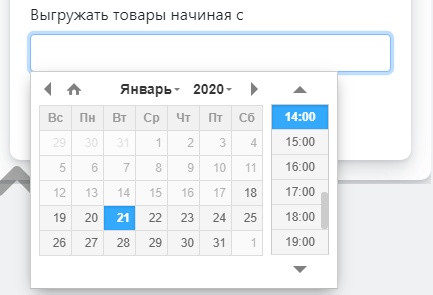 5. Выбрать дату, с какой начинать выгружать товары. В целях экономии ресурсов нельзя указать ранее 3х дней с текущей даты.